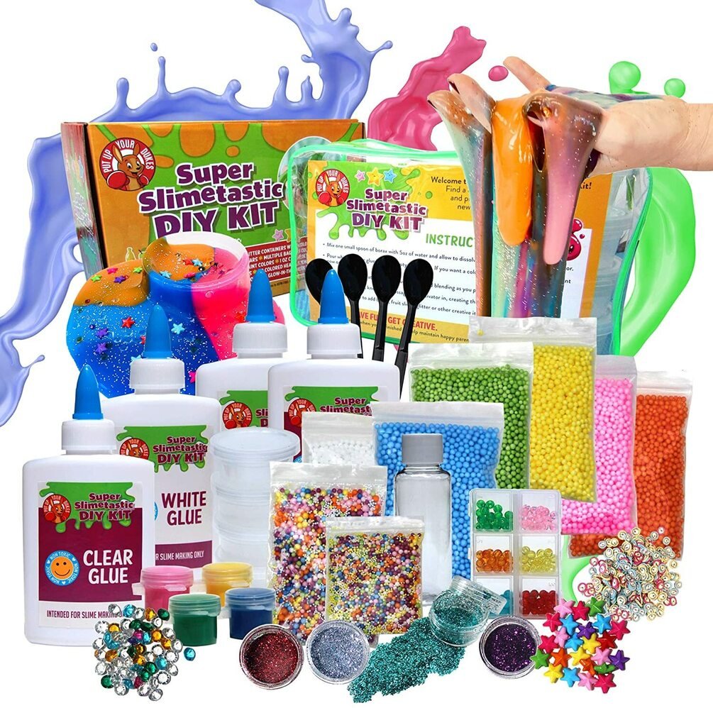 Super Slimetastic DIY Slime Kit for Girls and Boys - 4 Bottles of Glue - Borax - Complete Slime Making Kit - Slime Kits with Everything